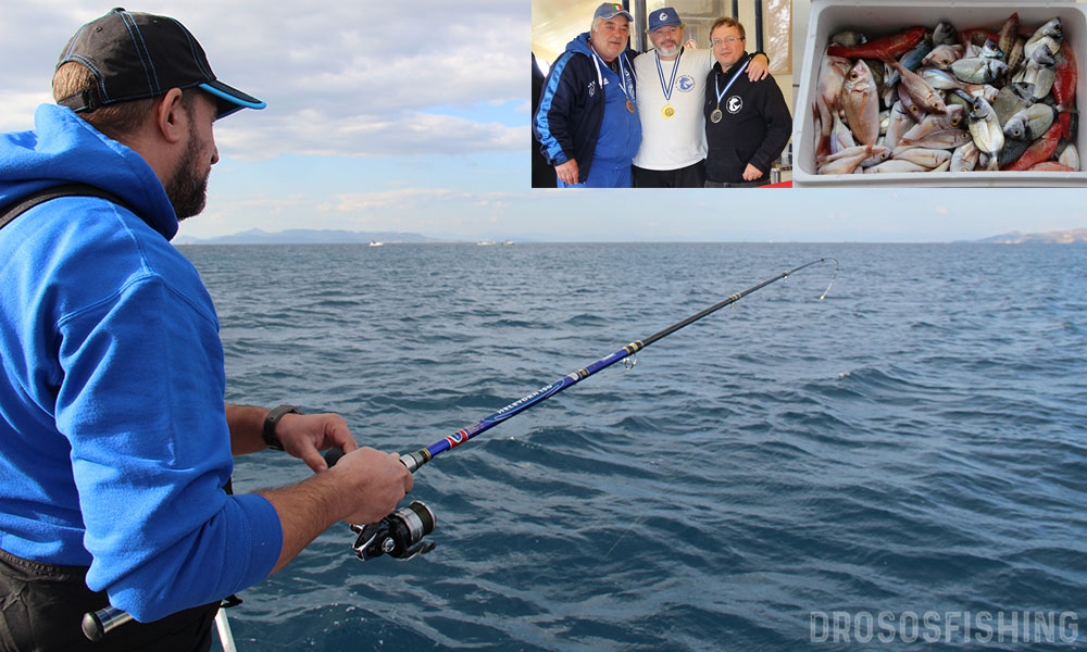 Ώρα 8 το πρωί και 16 σκάφη βρίσκονται αγκυροβολημένα σε τριάδες με δύο αθλητές από διαφορετικούς ομίλους στους 6 διαφορετικούς τομείς της τράπεζας. Με το που δίνεται η εκκίνηση οι αρματωσιές όλων πέφτουν δολωμένες στο νερό αναζητώντας τα ψάρια της περιοχής. Αυτά δεν άργησαν να φανούν και τα πρώτα λυθρινάκια βγήκαν στην επιφάνεια. Στη συνέχεια ακολούθησε μεγάλη ποικιλία διαφορετικών ειδών, όπως κατσούλες, χάνοι, κακαρέλοι, τσέρουλες ακόμη και γουρουνόψαρα. Όμως εκεί που τσίμπαγαν με όρεξη τα ψάρια, ξαφνικά σταμάτησαν και όλοι προσπαθούσαν να τα δελεάσουν είτε προσφέροντάς τους πιο πλούσιες δολωσιές είτε τοποθετώντας λεπτότερα παράμαλλα είτε ρίχνοντας τις αρματωσιές τους αρκετά μακριά από το σκάφος εξερευνώντας τη γύρω περιοχή.