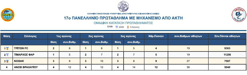 Τα τελικά αποτελέσματα στην ομαδική βαθμολογία είναι: