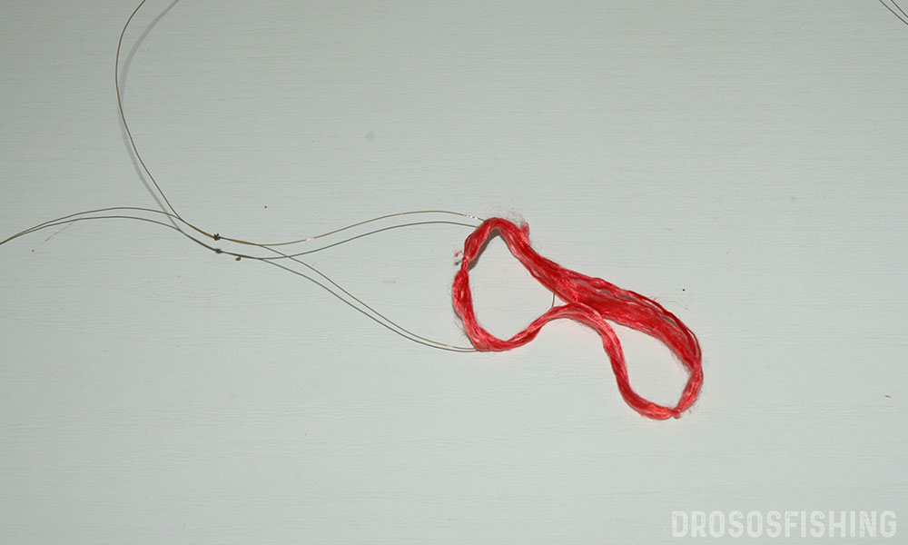 Θα χρειαστούμε μια λεπτή σχετικά πετονιά διαμέτρου 0,23-0,28 χιλιοστών. Αυτή μπορεί να είναι άνετα και η πετονιά που έχουμε τυλιγμένη στο μηχανισμό μας. Σε απόσταση γύρω στο μισό μέτρο από το άκρο της θα κάνουμε μια μικρή θηλιά όπως επίσης και μια δεύτερη γύρω στους 30 πόντους πιο πάνω.