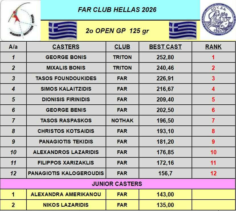 ΦΑΡ: 2ο Open GP 2026 125gr – Αποτελέσματα