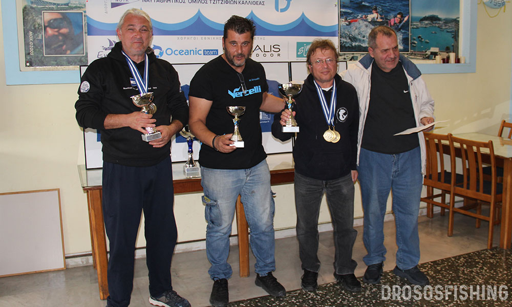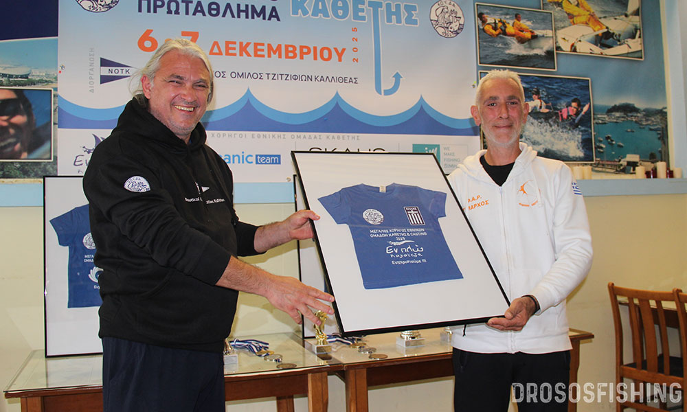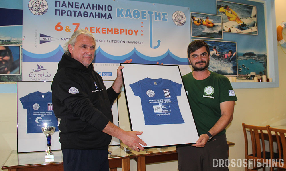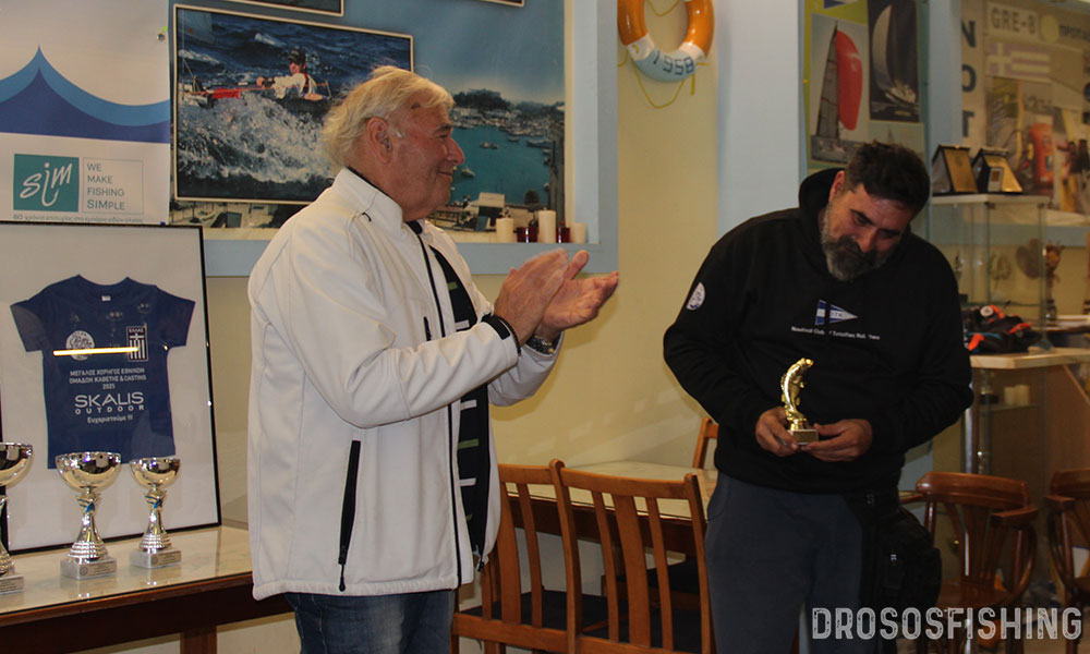 Ο ταμίας της ΕΟΥΔΑ Στράτος Λιαρδάκης έκανε την απονομή για το μεγαλύτερο αλίευμα του πρωταθλήματος που ήταν ένα λαγόψαρο 1134 γραμμάρια πιασμένο από το Διονύση Τσουκαλά.