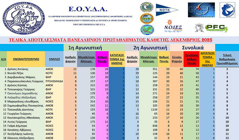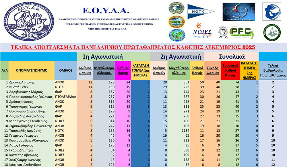 Πανελλήνιος Αγώνας Καθετής 2025-2026: Αποτελέσματα – Νικητές – Απονομές