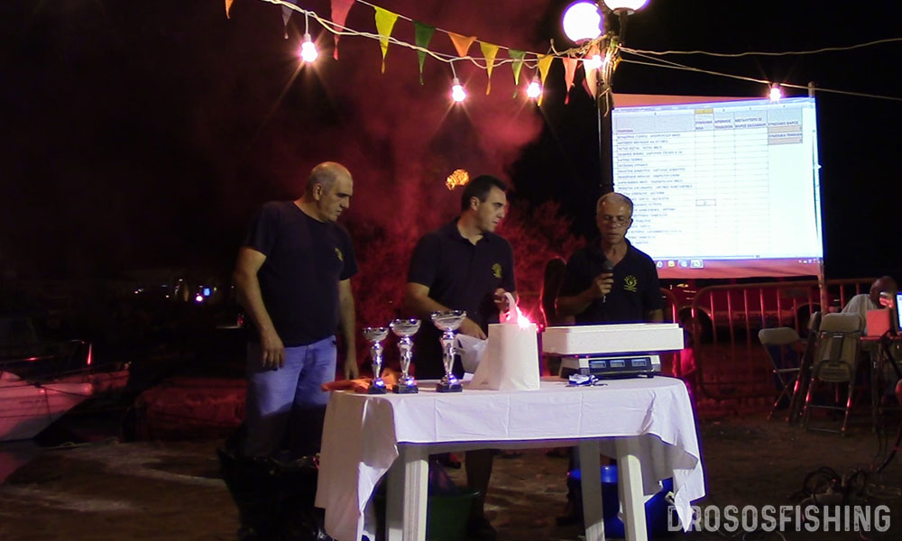 Το πρώτο βραβείο κέρδισαν ο Αβαγιαννός Γεώργιος με τον Σκοπελίτη Γεώργιο, που αλίευσαν 10 καλαμάρια βάρους 2.068 γραμ. Το δεύτερο βραβείο μοιράσθηκαν οι Καλαϊτζής Δημήτρης με τον Καρτάλη Δημήτρη, καθώς και οι Θεοδωράκης Μιχάλης με τη σύζυγό του Ανδριώτου Ελένη, που αλίευσαν από 7 καλαμάρια. Tο τρίτο βραβείο μοιράσθηκαν επίσης οι Ζερβός Ελευθέριος με τον Καγιαννιώτη Ευστράτιο και ο Πελτέκης Ζαφείριος, που αλίευσαν τα μεγαλύτερα καλαμάρια βάρους 290 γραμ. έκαστο.