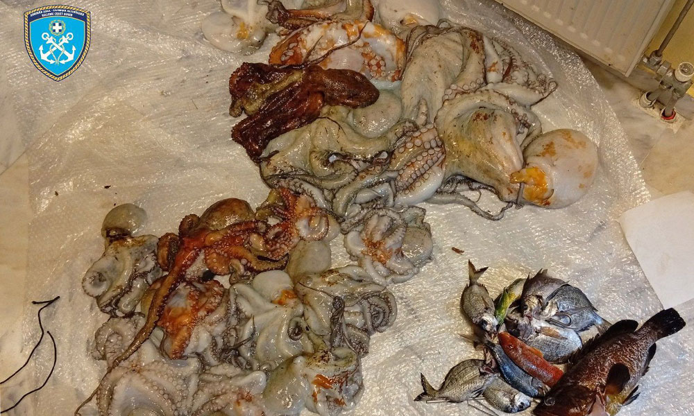 Συγκεκριμένα, ο ανωτέρω κατελήφθη να χρησιμοποιεί ψαροτούφεκο σε συνδυασμό με χημική ουσία και υποβρύχιο φως, έχοντας αλιεύσει συνολικά είκοσι επτά (27) κιλά χταπόδια, εκ των οποίων τα δύο (02) κιλά ήταν υπολειπόμενων διαστάσεων.