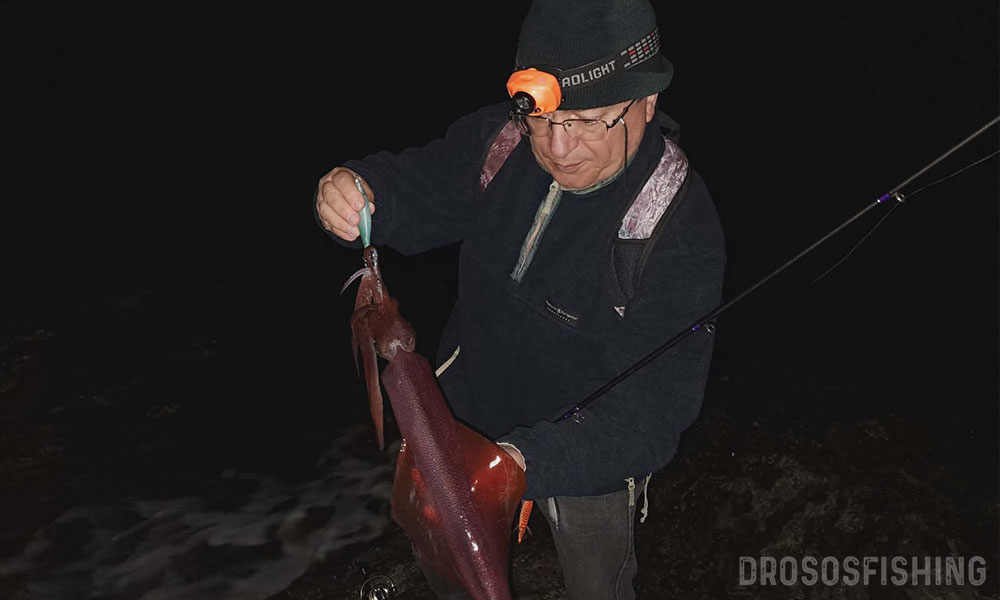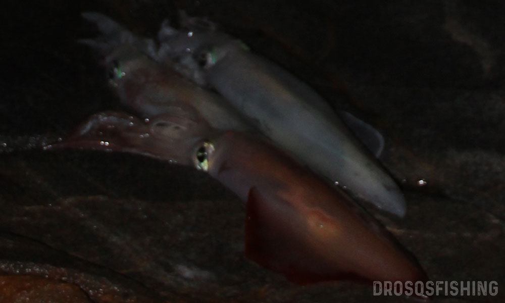 Οι μέρες κοντά στην πανσέληνο συνήθως δίνουν καλαμάρια. Έτσι κι εδώ τέτοιες μέρες αποφασίζουμε για μια καλαμαροεξόρμηση από την ακτή. Η συννεφιά δεν είναι ότι το καλύτερο κι αυτό θα εμποδίσει τα καλαμάρια να πιαστούν νωρίς. Όμως με το που αρχίζει να νυχτώνει κάνουν αρκετά έντονη την παρουσία τους.